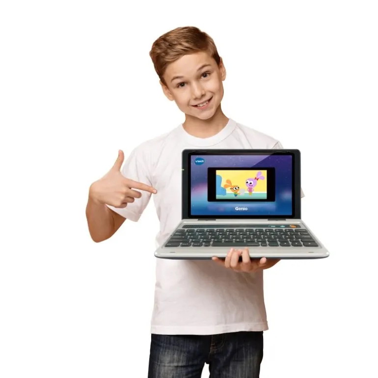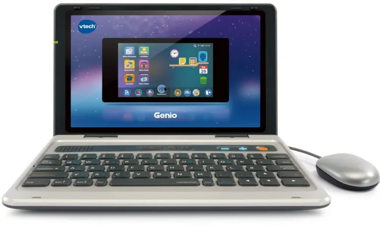Erste Erfahrungen im Umgang mit einem Laptop machen, verstehen, wie er bedient wird, und dabei mithilfe der vielen Lerngelegenheiten etwas zu Buchstaben, Wörtern, Zahlen und vielem mehr lernen. Mit 5“ Farbbildschirm (1280 x 720 Pixel) und kindgerechtem Homescreen sowie QWERTZ- Tastatur. Mit optischer Maus, die auf dem Deckel des Laptops verwahrt werden kann. Enthält diverse Funktionen: Kalender, Notizen, Kunstgalerie, Videogalerie, Musikgalerie, Tagebuch, Taschenrechner, Uhr, Textverarbeitungsprogramm. Mit Vorlagen zum Bearbeiten und Ausdrucken für den täglichen Gebrauch (z.B. Rezeptvorlagen, Tagesablauf, ..). 40 vorinstallierte Lernspiele den Kategorien Spracherwerb, Mathematik, Wissenschaften, Kreativität sowie Gedächtnis und Problemlösen. Mit zahlreichen weiteren Lernspielen erweiterbar, die über den Vtech Download Manager heruntergeladen werden können. Enthält viele Lernblätter aus verschiedenen Lernbereichen (Zahlen und Grundrechenarten, Buchstaben schreiben lernen, Umwelt, Berufe, etc.), die mithilfe einer microSD-Karte über den PC der Eltern ausgedruckt werden können. Mit Elternkontrolle Bereich. Mit WLAN-Anschluss und kindgerechtem, sicheren Webbrowser und Whitelist (Seiten müssen von den Eltern freigegeben werden). Mit Video zum Thema Datenschutz im Internet. Kopfhöreranschluss und SD-Karten-Slot vorhanden (microSD-Karte und Kopfhörer nicht enthalten). Mit Quad-Core-Prozessor, 1,2 GHz und 1GB RAM. Speicherplatz: 8 GB. Mit integriertem Lithium-Akku 1500 mAh. Inklusive Netzadapter. Ab 5 Jahren.