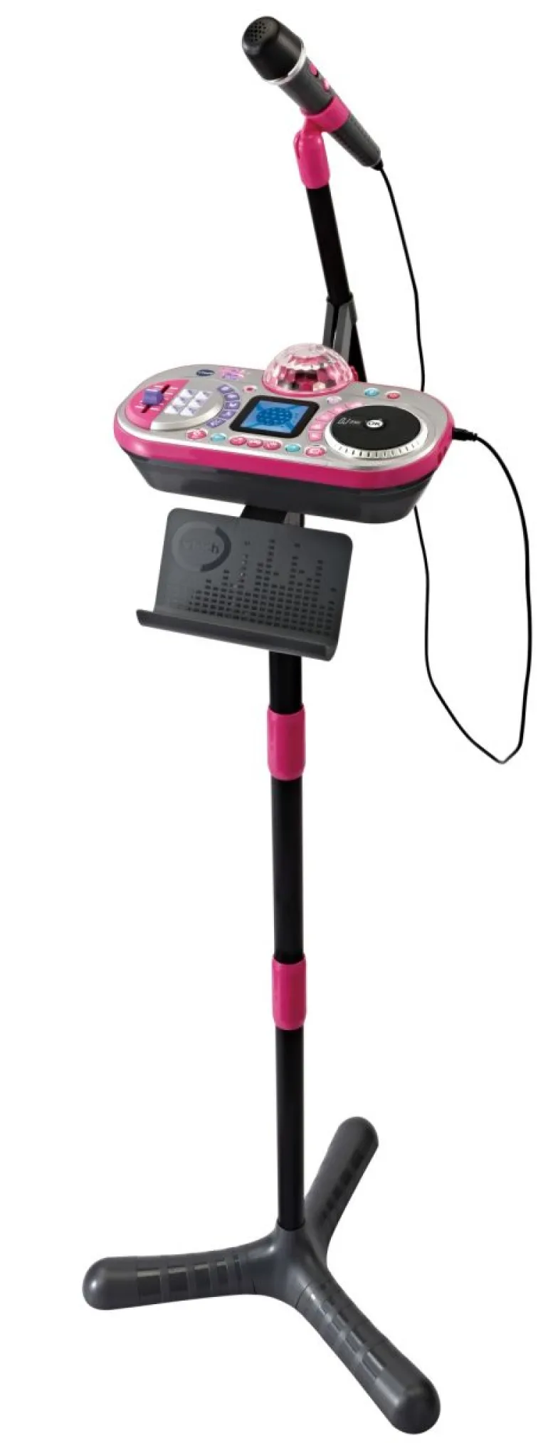 Mit dem 10-in-1 Kidi Super Star DJ Studio zum Superstar werden! Stimmreduktionfunktion: Gesang kann von allen vorinstallierten und den meisten externen Liedern reduziert oder entfernt werden. DJ-Funktion: Zum DJ werden und selbst Musik mischen, Geräuscheffekte oder Gesang hinzufügen, 8 vorinstallierte Lieder mit coolen Animationen, Diskolicht, das passend zur Musik leuchtet. Coole Stimmverzerreffekte, Aufnahmefunktion, so kann die Performance immer wieder angehört werden, Spiele und Aktivitäten. Coole Publikum-Effekte hinzufügen, externen Musikplayer anschließen und zu den eigenen Lieblingsliedern singen. Eingebauter Lautsprecher, abnehmbares DJ Mischpult, das überall mit hingenommen werden kann. Inklusive Klinkenkabel, Lautstärkeregler, kindersicheres Batteriefach und Abschaltautomatik. Demobatterien enthalten. Alter: 6-12 Jahre.