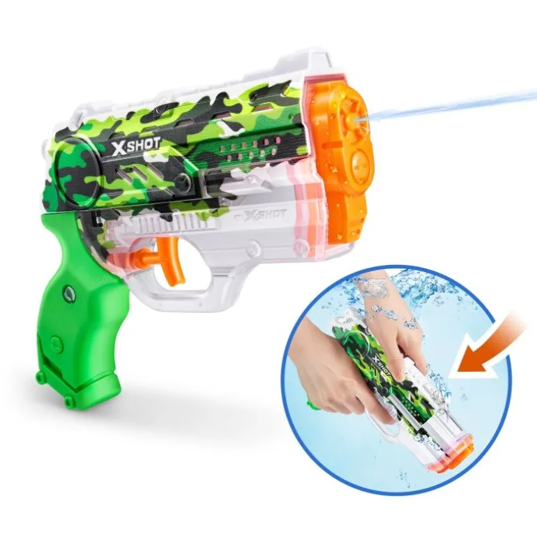 Sorge diesen Sommer für Abkühlung mit den neuen X-Shot Water Fast-Fill Skins Blastern! Der X-Shot Nano Fast-Fill Blaster kann in nur 1 Sekunde aufgefüllt werden, damit du deinen Gegnern in der Wasserschlacht immer einen Schritt voraus bist.