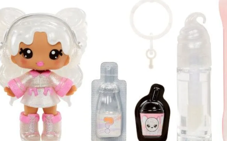 Duftende Yummiland Lipgloss Doll Avery Ice Cream im wunderschönen Süßigkeitenlook. Eigenen Lipgloss kann man in vier einfachen Schritten kreieren: Zuerst die Lipglossbasis öffnen, dann die Geschmacksrichtung aus einer Mini-Sodaflasche hinzufügen, anschließend die Farbe aus einem Mini-Boba-Shake dazugeben und schließlich schütteln und beobachten, wie sich die Farbe magisch verändert. Die Düfte lassen sich mischen und kombinieren, um neue Kreationen zu schaffen. Ein Schlüsselanhänger ist ebenfalls enthalten.