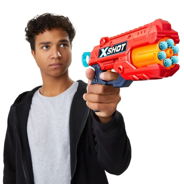 Schieße ohne zu zögern mit dem Reflex 6 Blaster! Der rotierende Lauf lädt und feuert 6 Darts innerhalb von 30 Sekunden.